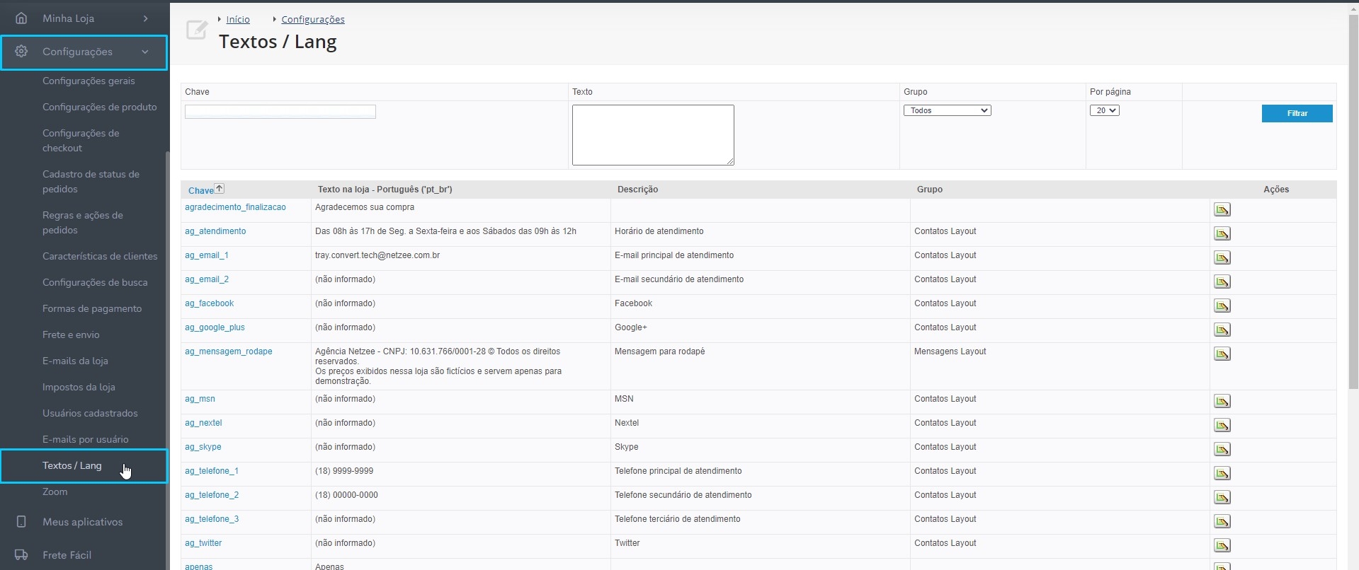 Essa Coleção de Temas utiliza uma variável de texto que precisa ser configurada na sua loja. A variável em questão é a ag_mensagem_rodapé. Ela configura o texto que será exibido no rodapé da sua loja com as informações legais.