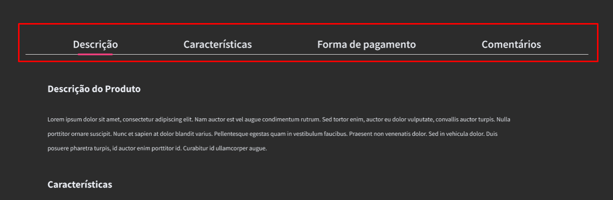 Com isso, além das abas padrões, você pode adicionar conteúdos personalizados para produtos, categorias específicas ou até mesmo marcas, configurando a exibição de abas adicionais&#x20;